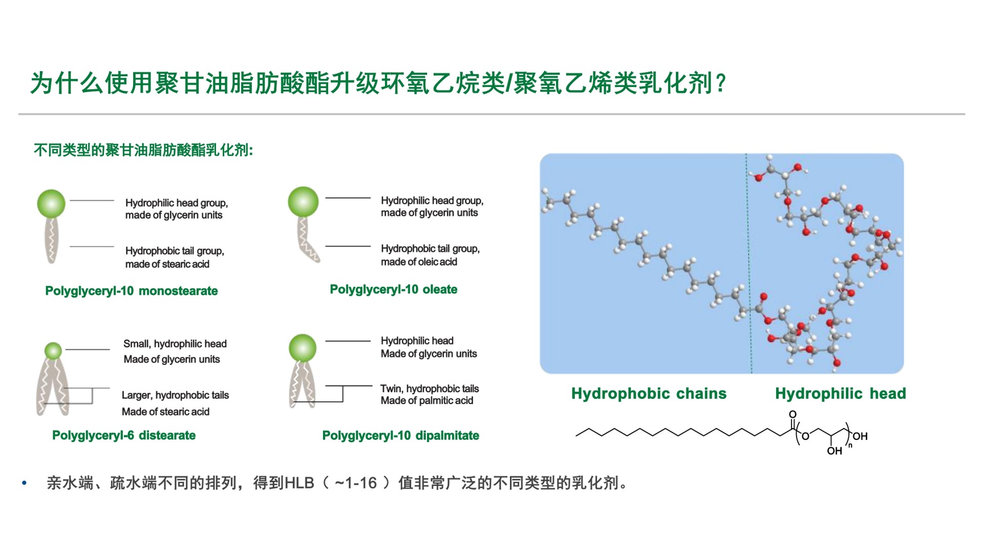 描述: 该产品突破了传统的W/O乳化理论,无需考虑油脂的极性和分子量可以轻易乳化高含量的植物油脂。 |