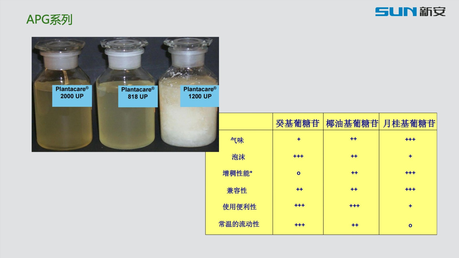 描述: 最温和的烷基糖苷产品,阴离子性,可做主表。 |