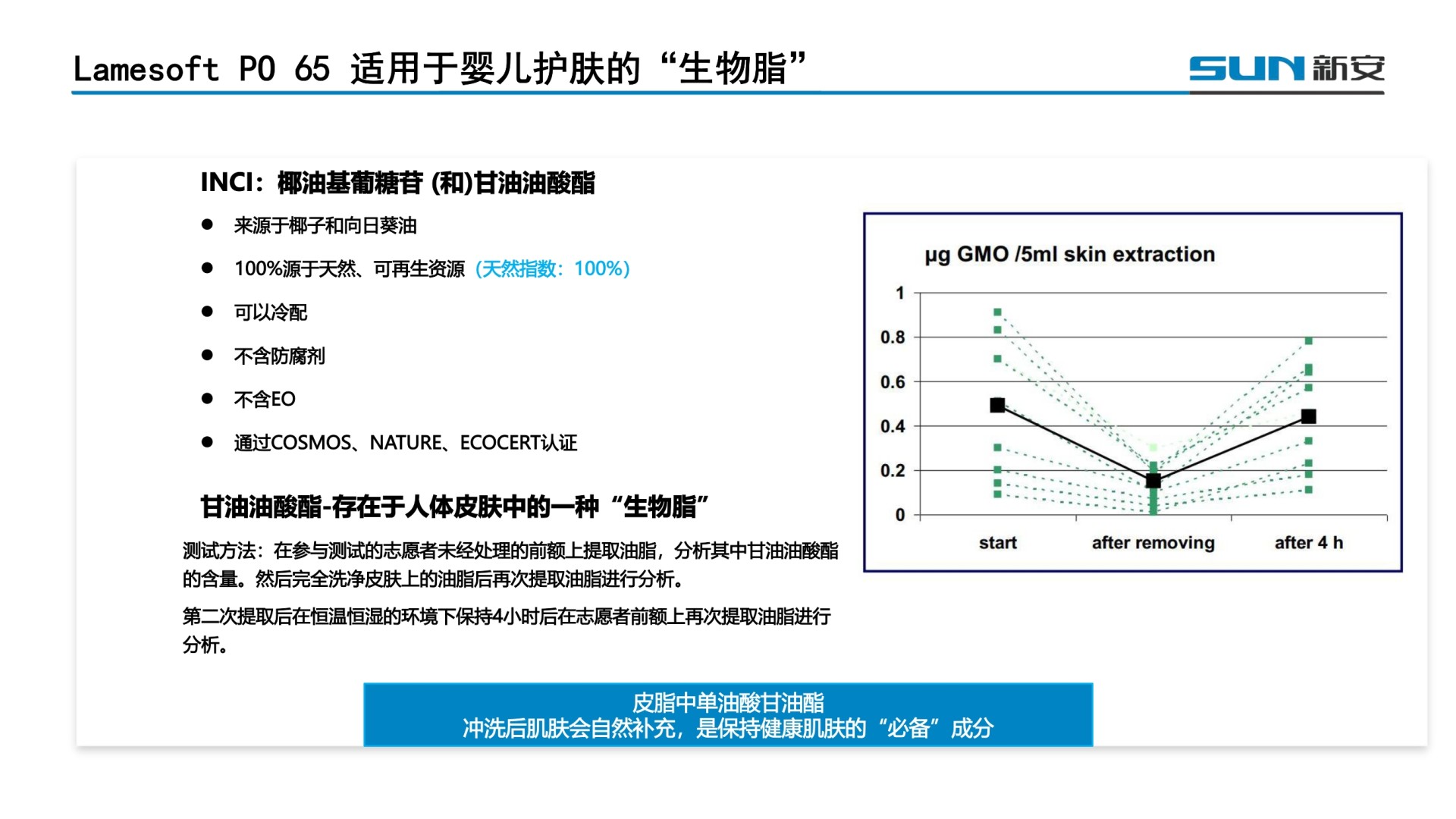 描述: 甘油酯类是婴幼儿皮脂中重要的组成部分,而油酸单甘油酯不仅能够作为乳化剂,也是非常好的保湿剂皮肤脂类补充剂 |